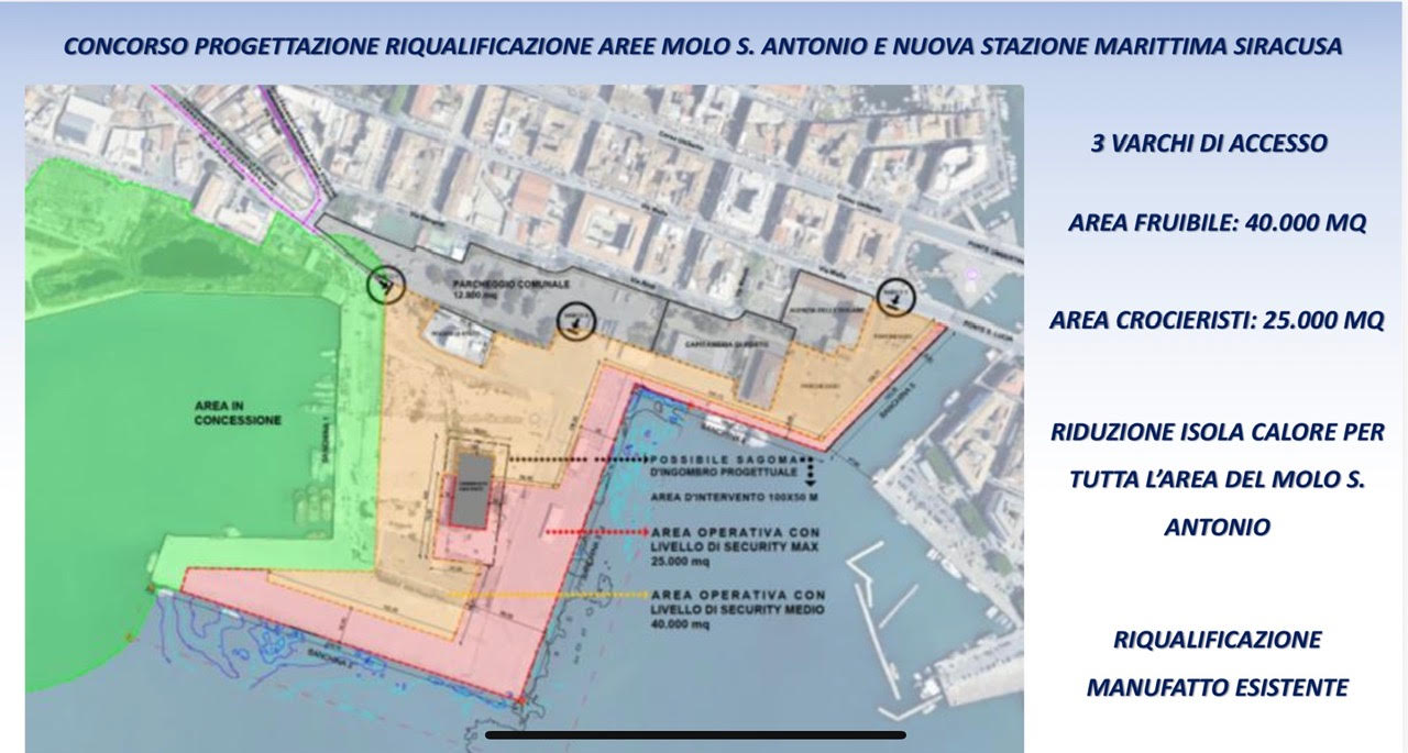 Il porto grande di Siracusa avrà una nuova stazione marittima frutto di un progetto “corale” voluto dall’Autorità di Sistema portuale del Mare di Sicilia orientale (Adsp) che ha coinvolto il Comune di Siracusa, la Facoltà di Architettura dell’Università di Catania, la Soprintendenza dei Beni culturali e ambientali di Siracusa, l’Ordine degli Ingegneri della Provincia di Siracusa, l’Ordine degli Architetti di Siracusa e, naturalmente, la Capitaneria di Porto.