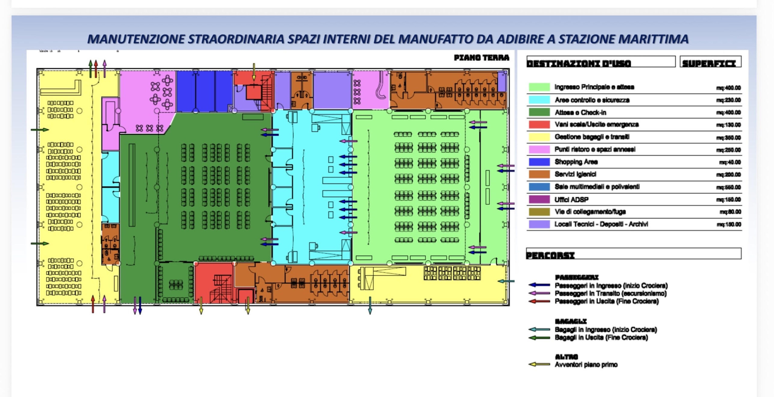 La gara per appaltare i lavori è ormai pronta e riguarda un’area di 6,5 ettari: “Rappresenta il risultato della massima sinergia tra enti e partner interessati – ha evidenziato Francesco Di Sarcina – sarà ristrutturato e riqualificato, all’interno e all’esterno, un vecchio capannone, che fungeva da magazzino, abbandonato da oltre vent’anni, situato nel molo Sant’Antonio in una posizione strategica per garantire servizi e attività portuali”.
